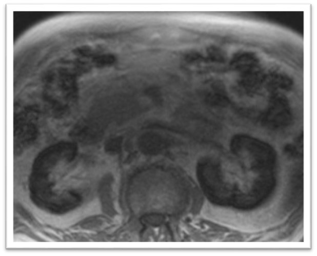 The answer for last week's case is: Paroxysmal nocturnal hemoglobinuria (MRI finding is hemosiderosis in the renal cortex seen here on T1 in phase image). Thanks for playing! Wait for a new challenge tomorrowpic.twitter.com/EDpdYuc1jr