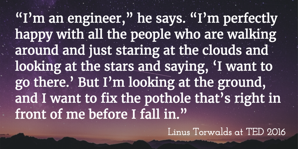 As wonderful as #linux & #git is! THANKS Linus & @linuxfoundation The power of code: http://blog.ted.com/the-power-of-code-the-tech-talks-in-session-6-of-ted2016/ …pic.twitter.com/ZMayhFky5i