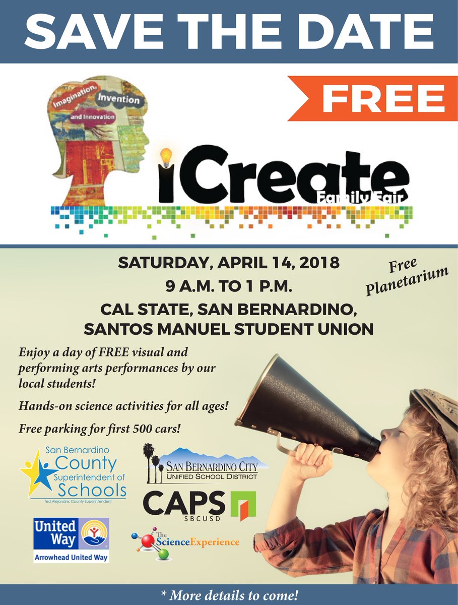 @CSUSBNews Santos Manuel Student Union on April 14 from 9am to 1pm. See hands-on STEM presentations, musical performances by talented students, and the first 500 cars get free parking. For more info call Maria Garcia at 381-1250.pic.twitter.com/5DrSCQ4DuO