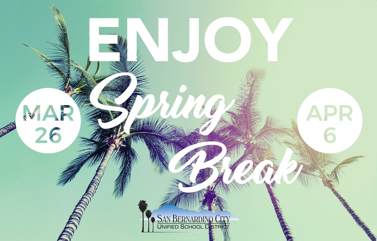 We hope you're having fun and enjoying Spring Break! This is just a friendly reminder that we return back to school on April 9, 2018. Have fun and be safe out there! #SBCUSDpic.twitter.com/axLdUcVB75