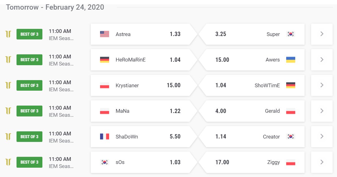 ODDS for IEM KATOWICE tomorrow #1: http://bit.ly/unikrnsc2 pic.twitter.com/AWMdwwvCiw