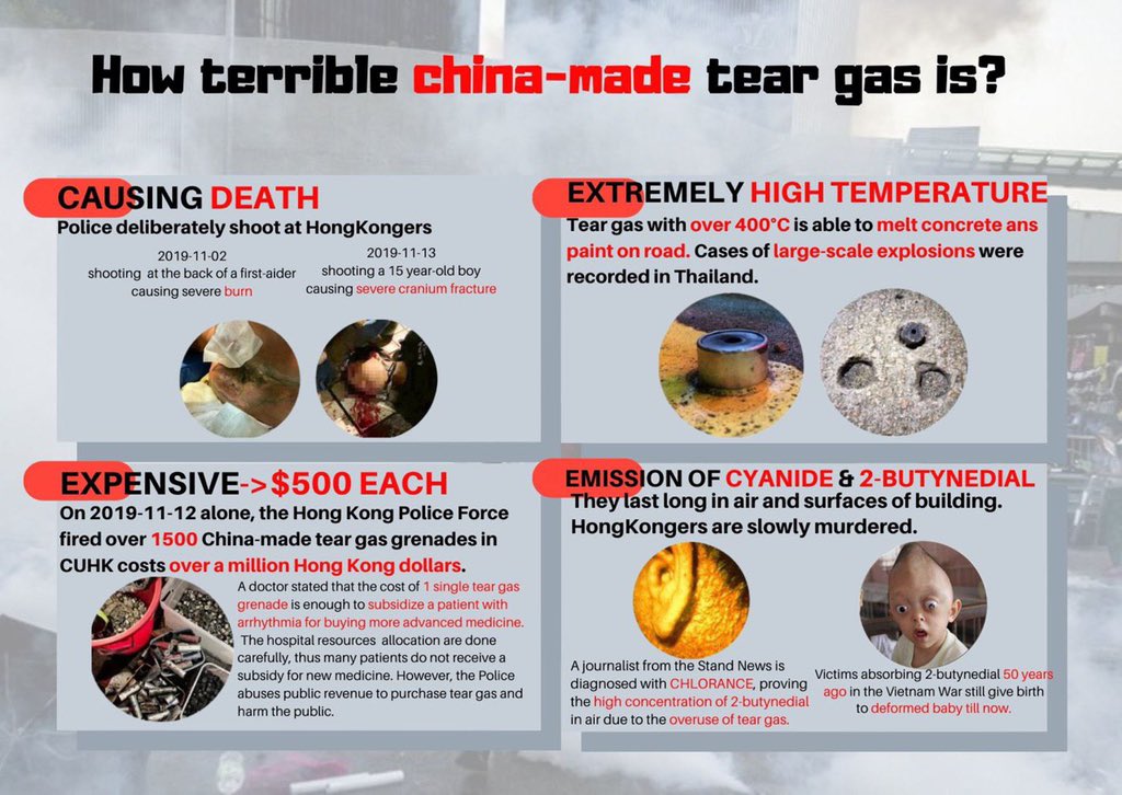 #HongKong is becoming a tear gas city because of the abuse tear gas by HKpolice. This action is same as killing all people in HK.