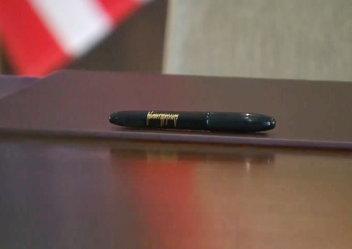 #LIVE: The pen being used for the signing appears to be emblazoned with President Donald Trump's signature #SingaporeSummit https://buff.ly/2l4DK94 pic.twitter.com/PuQIgAMe6q