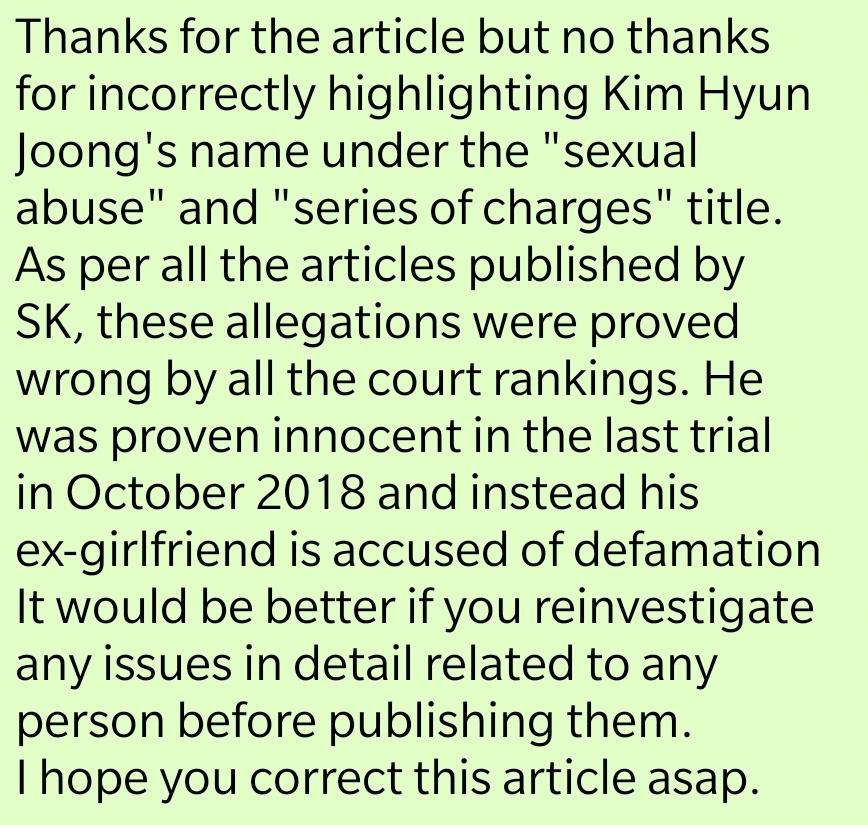 Please remove Kim Hyun Joong from this article. Please don't publish an article if you are giving wrong informations. He had suffered already enough. Please don't drag him into this.