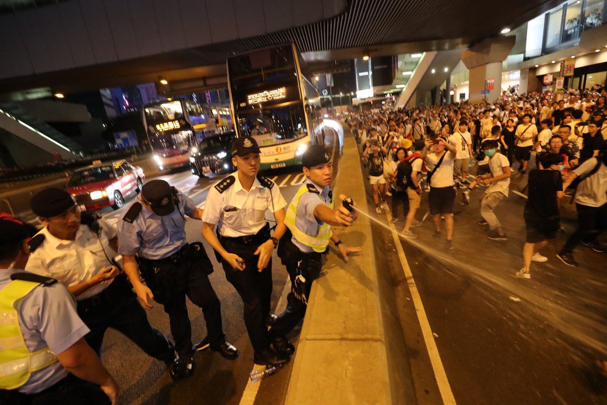 #LIVE: Although the Hong Kong protest remained overwhelmingly peaceful, officers had to use pepper spray on about 10 protesters after they tried to lay metal barricades on the road http://buff.ly/2XFEsLW#反送中#extraditionbillpic.twitter.com/OmNwrxnupo