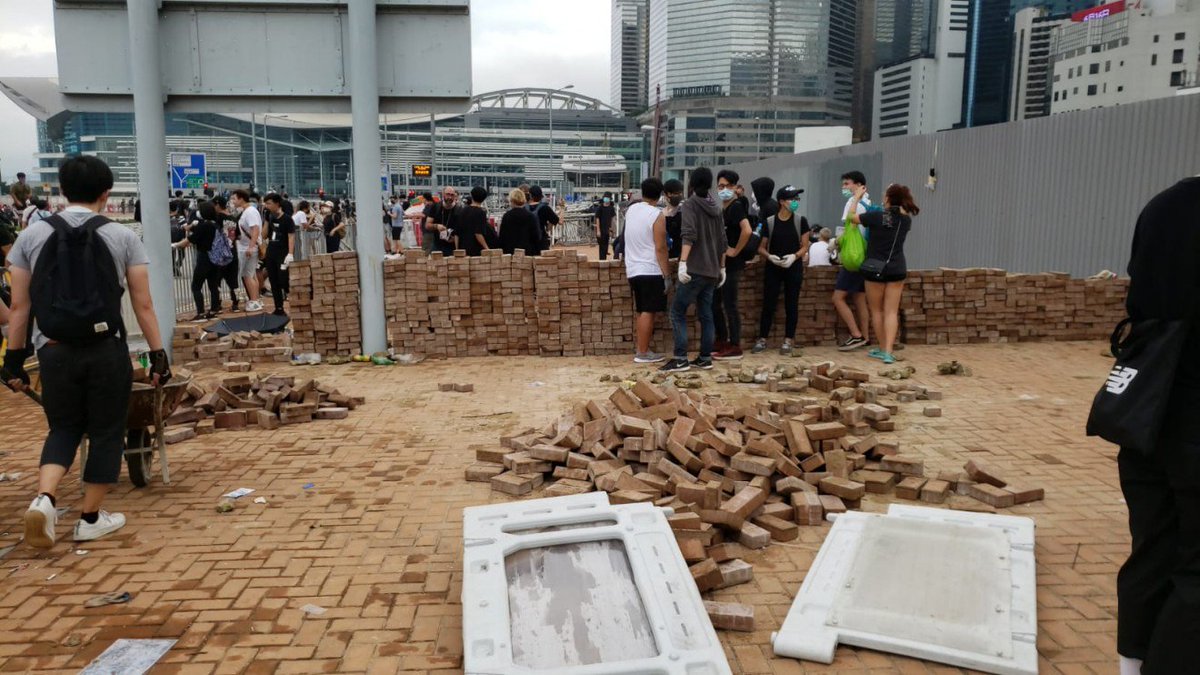 #LIVE: Protesters are being asked to storm the Legco east entrance, and others are seen nearby gathering bricks from the ground in a scene reminiscent of the Mong Kok riot http://buff.ly/2WzVazL #ExtraditionBillpic.twitter.com/8bZECtVlad