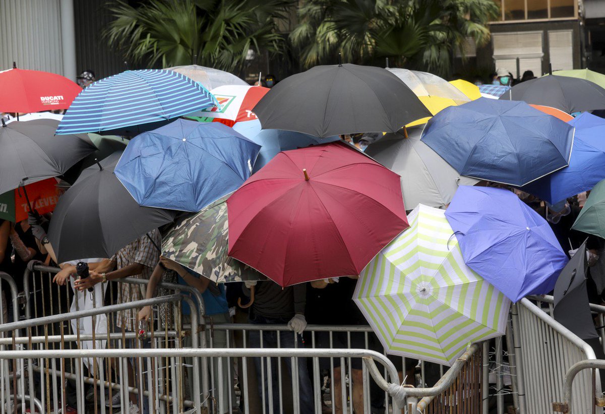 #LIVE: Riot police are on standby again after protesters threaten to charge the Legco building. After a brief lull, the protesters are once again armed with umbrellas and seem to be moving forward. http://buff.ly/2WzVazL #extraditionbillpic.twitter.com/MyAA9aOsp0