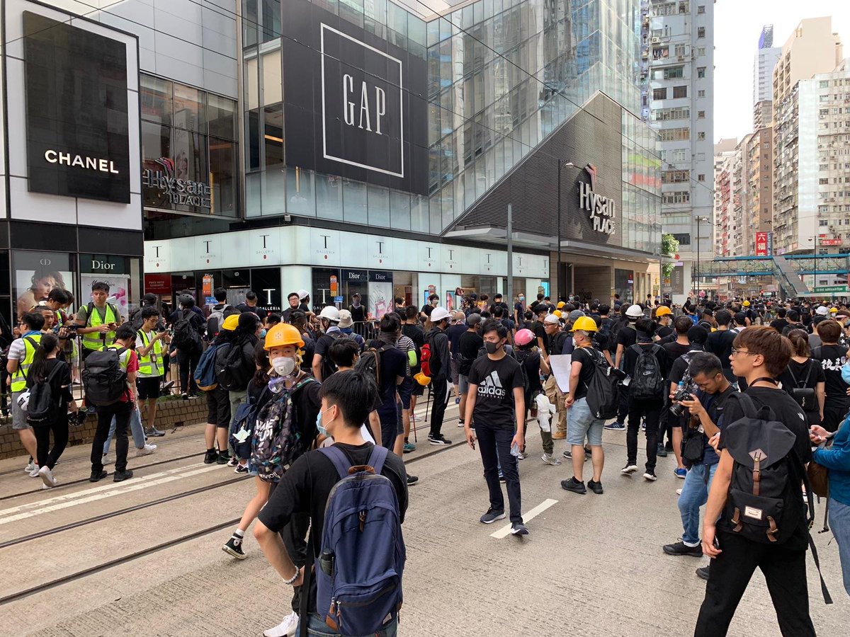 #LIVE: The crowds stopped outside Sogo, a shopping mall in Causeway Bay, for a break. After a brief discussion, they said they would soon head to the Victoria Park http://buff.ly/2MiFtGN #728protestpic.twitter.com/E7MwSQgsGX