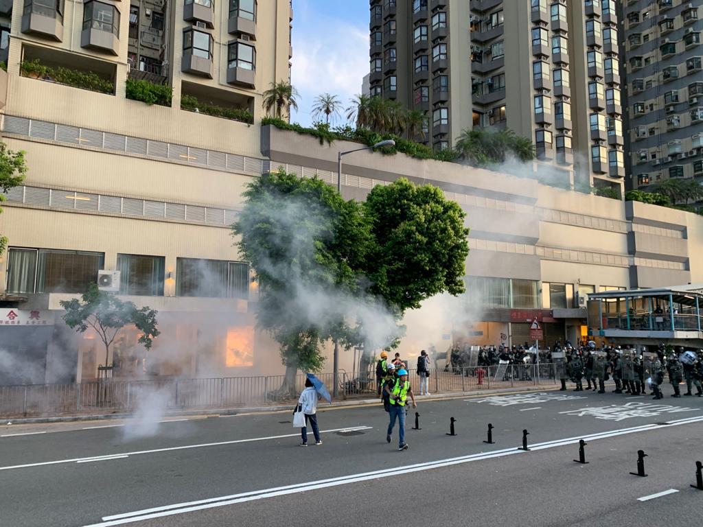 #LIVE: Police fire tear gas at Connaught Road West, where protesters have clashes with officers. The location is 200m away from the liaison office. http://sc.mp/ecki #728protestpic.twitter.com/KUwykWcgyd