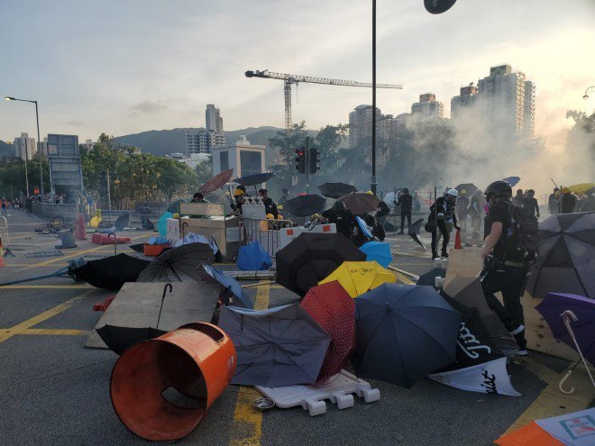 #LIVE: In Tai Po, police have fired at least 10 rounds of tear gas after seeing their defence lines challenged by protesters on the western side of Tai Po Tai Wo Road http://sc.mp/tiw1 #HongKongProtestspic.twitter.com/oDSkbBUs8j