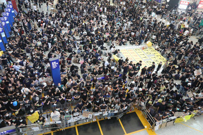 #LIVE: At the airport, a few hundred remain at the sit-in expected to last until Sunday. Continue to follow our live blog for continuing coverage here: http://sc.mp/h6hv  #hongkongprotests