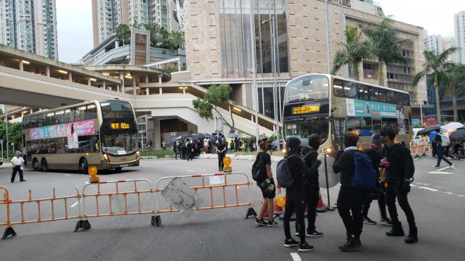 #LIVE: Protesters are now targeting another district, arriving in Tsuen Wan to block roads with barricades. Police have not caught up yet.