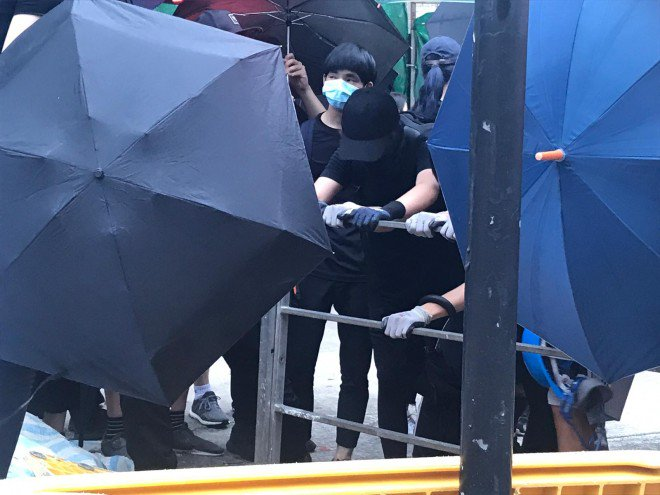 #LIVE: The group of protesters at Kowloon Bay are making an advance on the police station, picking up road barricades on their way to Ngau Tau Kok Police Station. http://sc.mp/h6hv #hongkongprotestspic.twitter.com/a8l7o5O0my