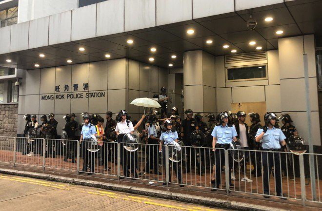 #LIVE: Some riot officers are seen standing by outside Mong Kok Police Station. A small number of protesters from the Hung Hom march are headed to the district http://sc.mp/2r6q #hongkongprotestspic.twitter.com/g2Svkrr79v
