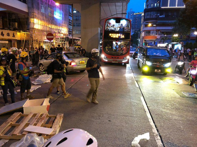 #LIVE: Protesters have also built roadblocks on Prince Edward Road, and a bus and other vehicles have been stopped. http://sc.mp/2r6q #hongkongprotestspic.twitter.com/HXjVqHaeac