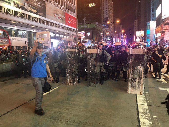#LIVE: As riot police advanced along Nathan Road, protesters fled to neighbouring Sai Yeung Choi Street South, although some demonstrators called on others to try to enter Mong Kok Police Station. http://sc.mp/2r6q#hongkongprotestspic.twitter.com/uQJL3HGAOK