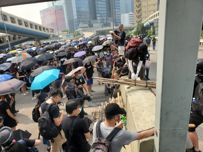 #LIVE: Scenes from the ground, as some protesters try to set up barriers http://sc.mp/zeg4 #HongKongProtestspic.twitter.com/OIxUv493Vx