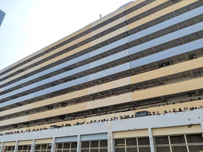 #LIVE: Protesters have gathered in a multilevel industrial building opposite the Ngau Tau Kok police station; they shout taunts at riot police across the street http://sc.mp/zeg4 #HongKongProtestspic.twitter.com/xUN7bLUdEQ