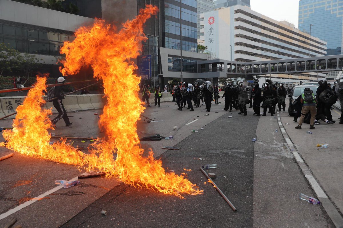 #LIVE: From earlier today - Post photojournalist Sam Tsang captures the dramatic moment a petrol bomb is thrown at police this afternoon http://sc.mp/zeg4 #HongKongProtestspic.twitter.com/lNfeU0WXOO