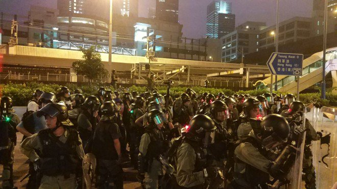 #LIVE: Police officers are out in force, blocking a section of Kwun Tong Road, thinking protesters might head that way. http://sc.mp/zeg4 #HongKongProtestspic.twitter.com/TgH2bnsiWa