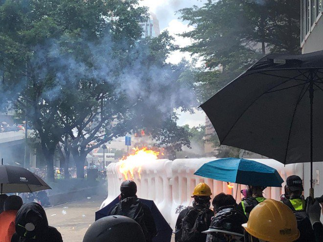 #LIVE: Police have fired at least another two rounds of tear gas, after protesters threw bricks and hard objects at them outside LegCo. http://sc.mp/3nrqw #hongkongprotests