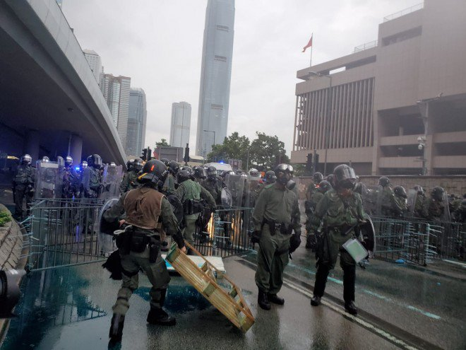 #LIVE: Riot police are coming from three directions, including Central, Harcourt Road and Tim Mei Avenue directions. Protesters are now retreating in the direction of Pacific Place. http://sc.mp/3nrqw  #hongkongprotests