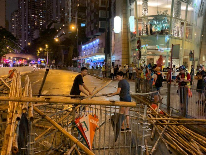 #LIVE: Across the harbour in Tsim Sha Tsui, trouble is brewing. After letting some buses pass, protesters have now set up roadblocks on Nathan Road with rubbish bins and signs. http://sc.mp/3nrqw #hongkongprotests