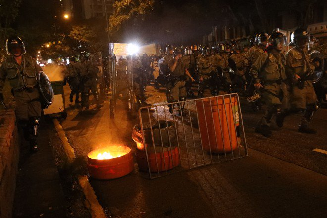 #LIVE: Sources tell the Post there were two live rounds fired in the air near Victoria Park at around 9pm, as police faced off with protesters http://sc.mp/3nrqw #hongkongprotests
