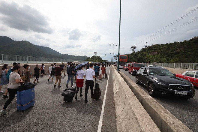 #LIVE: Protesters and other people from the airport are walking along North Lantau Highway from Tung Chung to Sunny Bay http://sc.mp/cdc1k #hongkongprotestspic.twitter.com/5kVRhfsdia