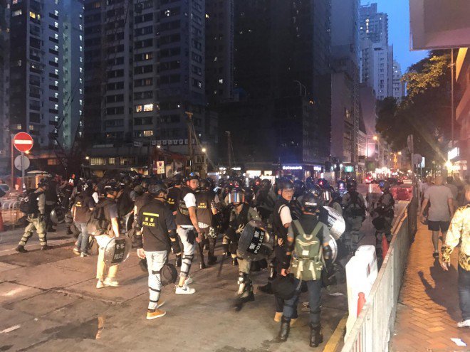 #LIVE: Police raise black flag warning that they may use tear gas at Jardine’s Crescent, as a crowd of protesters chants “triad” at them http://sc.mp/9k5nr #HongKongProtestspic.twitter.com/ZzJzPYFapg