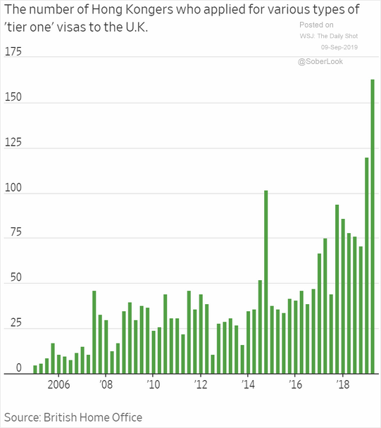 While the trend looks interesting on a chart, still very few Hong Kongers are applying for a UK visa. Chart below: .