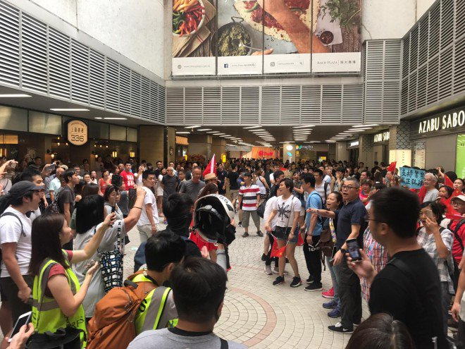 #LIVE: The confrontation between rival camps continues at Amoy Plaza in Kowloon Bay. Follow our continuing coverage here https://sc.mp/y4ze8 #hongkongprotestspic.twitter.com/0LSOuDBUmD