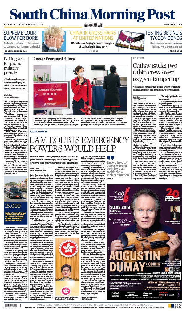 2 of 5: Hong Kong leader Carrie Lam fears damaging city’s reputation further by invoking emergency powers #hongkongprotestshttps://sc.mp/esoaa