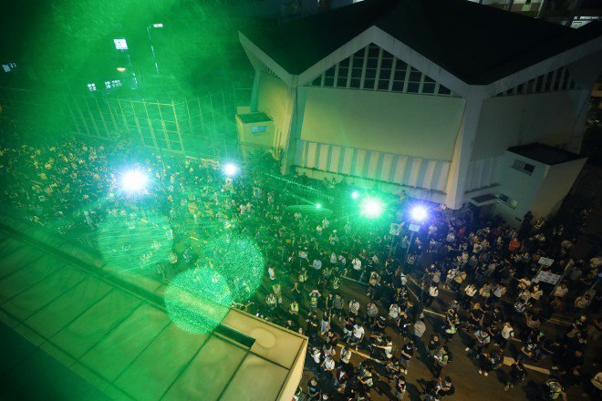#LIVE: Hong Kong protesters earlier gathered outside the stadium while Carrie Lam’s session was under way http://sc.mp/ki3nr