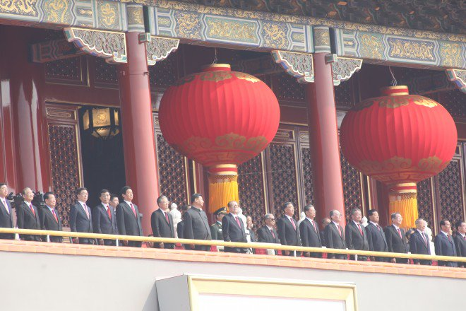 #LIVE: Embattled Hong Kong leader Carrie Lam Cheng Yuet-ngor was photographed earlier watching the military parade with other guests on the rostrum overlooking Tiananmen Square. https://sc.mp/ainy1 #hongkongprotestspic.twitter.com/BVT47LO3Nn