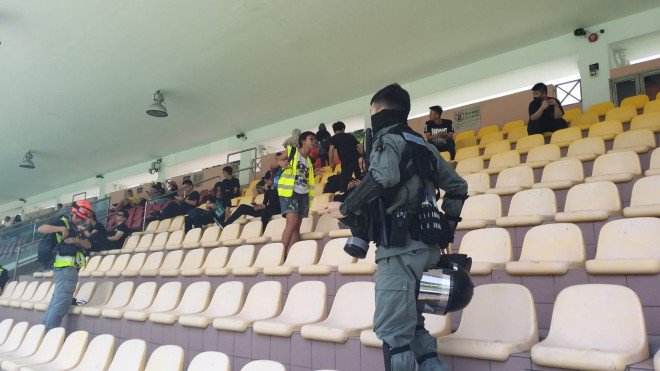#LIVE: Outside Tuen Mun town hall, police are dispersing protesters with batons.