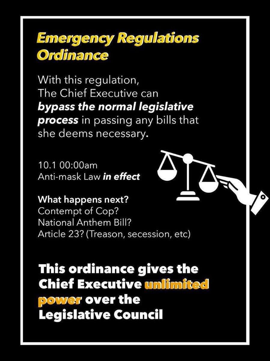 Anti-mask law is just a mask covering the emergency regulations ordianance. It is actually HK and CCP governement revealing their dictatorship nature. Please stand with Hong Kong against totalitarianism. #StandWithHongKong #SOSHKpic.twitter.com/voVpijcS4W