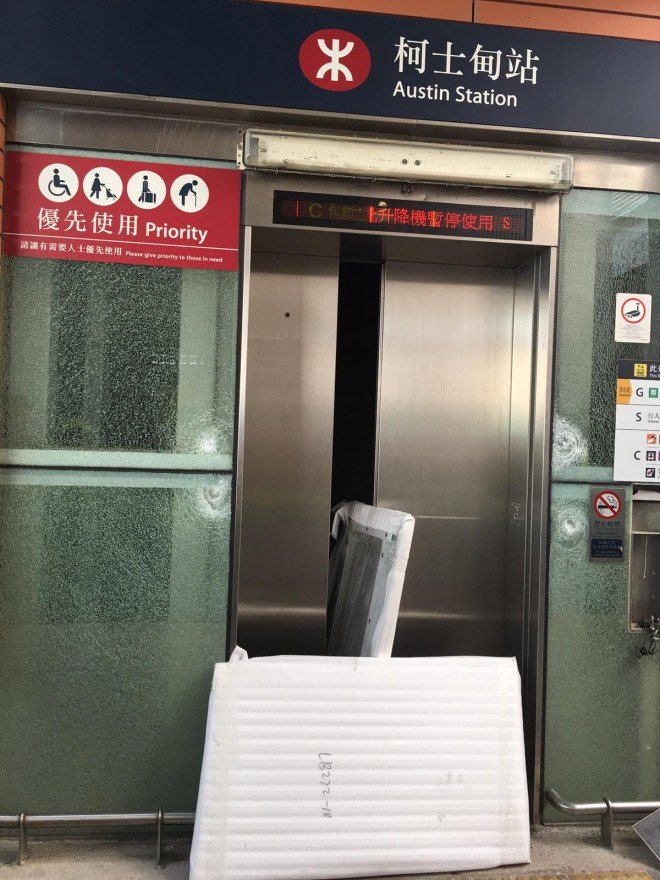 #LIVE: Protesters have built barricades near Austin Station. They have also vandalised a lift inside http://sc.mp/n2lno pic.twitter.com/GGIEjDXBFJ