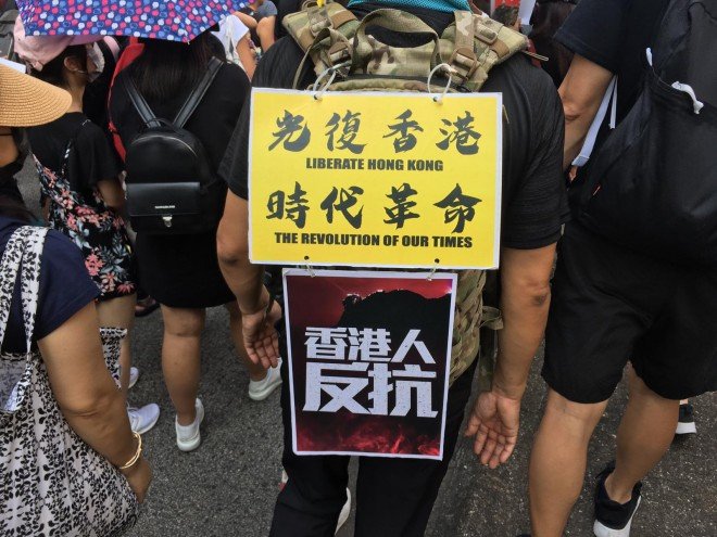 #LIVE: The march passes a banner at the Eaton Hotel which, given the recent protest movement's revolutionary themes, seems apt http://sc.mp/n2lno pic.twitter.com/xJ1W9jeY0Y