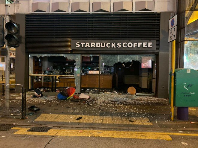 #LIVE: Radical protesters have trashed parts of Sheung Wan railway station. A Starbucks branch in the area has been heavily vandalised. https://sc.mp/xxhnx #hongkongprotestspic.twitter.com/OuQPRrgURR