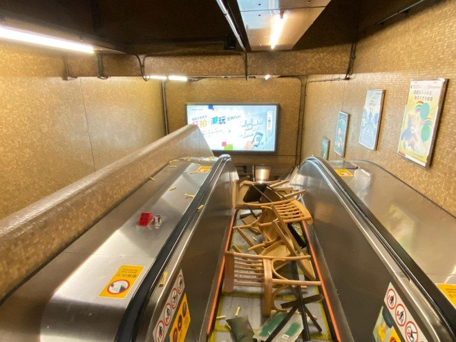#LIVE: In Sheung Wan, construction waste is used to build barricades. An Arome chain, a franchise under the targeted Maxim’s group, has also been vandalised. Water is seeping from the shop. https://sc.mp/xxhnx #hongkongprotestspic.twitter.com/vIT4XFz5MA