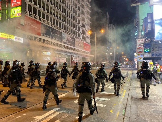 #LIVE: Protesters have thrown petrol bombs at police in Mong Kok, where tensions are rising. In return, officers fire tear gas as crowds disperse amid the chaos. https://sc.mp/xxhnx #hongkongprotestspic.twitter.com/zFV4ejP3qv