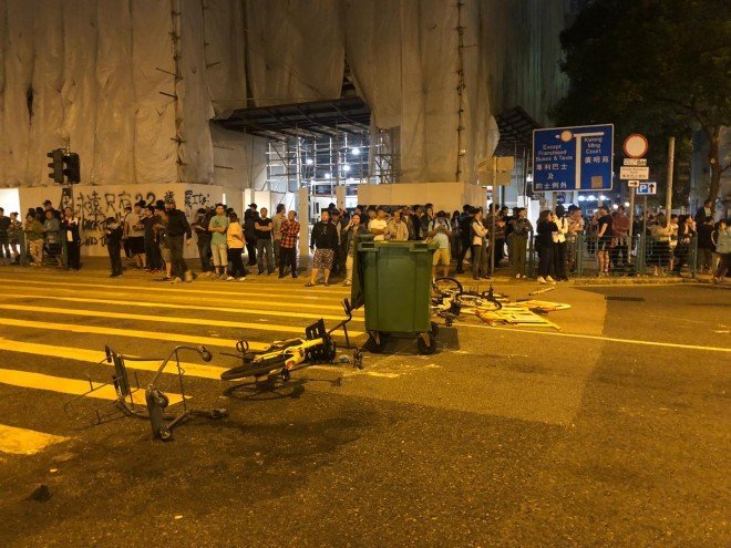 #LIVE: At a junction on Nathan Road in Mong Kok where police earlier cleared roadblocks set up by protesters, barricades have once again been erected, as protesters return to the scene http://sc.mp/rijgc  #HongKongProtestspic.twitter.com/hEMgty3xYU