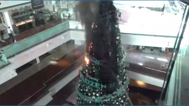 #LIVE: The Christmas tree in Festival Walk, a shopping centre in Kowloon Tong, has been set on fire again by protesters hurling petrol bombs. It had been set ablaze the night before https://sc.mp/k5fad #hongkongprotestspic.twitter.com/b4rfveo6bw