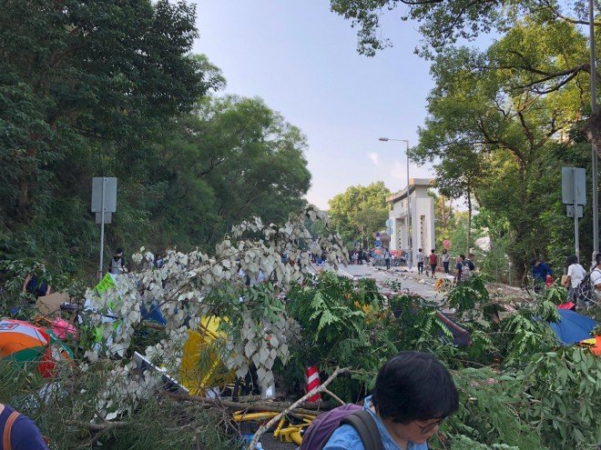 #LIVE: Protesters have built two “checkpoints” at Chinese University to have a clear view of police action http://sc.mp/k5fad #HongKongProtestspic.twitter.com/yPgmYtskPY