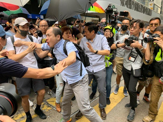A truck rushed through a roadblock on Chatham Road South, with protesters throwing petrol bombs at it in return. Its container was briefly on fire but protesters later helped put it out. An argument was triggered but protesters did not pursue. Video: SCMP/Lea Li pic.twitter.com/4zRR14wQoW