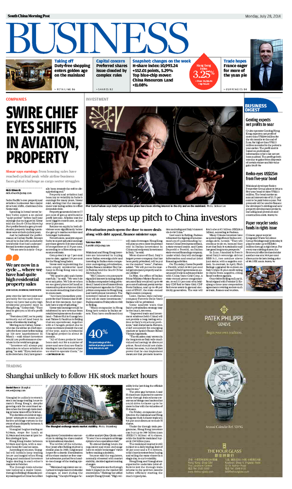 Padoan's visit | Top story “@SCMP_News: Our top Business stories for today. Read them here: http://trib.al/138thWp pic.twitter.com/OrUWXIqjtL”