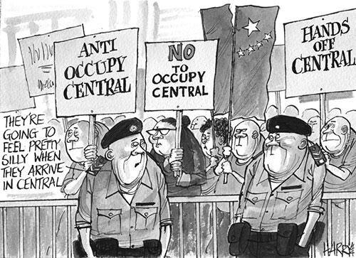 LULZ: @SCMP_News roast anti-#OccupyCentral demo: "They're going to feel pretty stupid when they get to Central!" #owspic.twitter.com/rH4RdBqalS