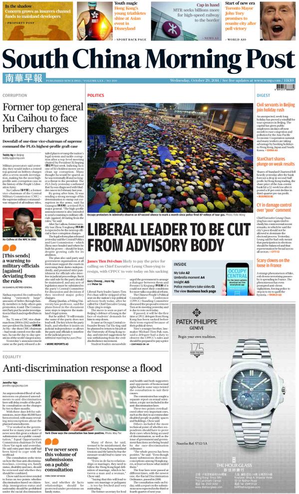 Our front page for Wednesday, October 29. Read all of our top stories here: http://www.scmp.com pic.twitter.com/DcyZhgcYRn