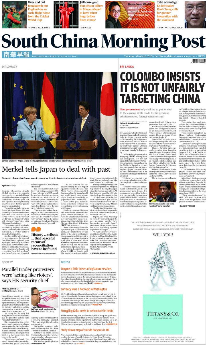 Our front page for March 10, 2015. Check out the latest news & top stories at http://scmp.com pic.twitter.com/tV7REh615s